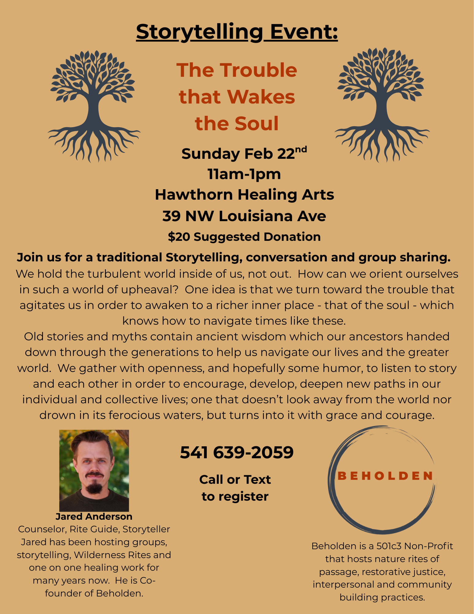 Jared will be offering storytelling at an in-person event in Bend, Oregon